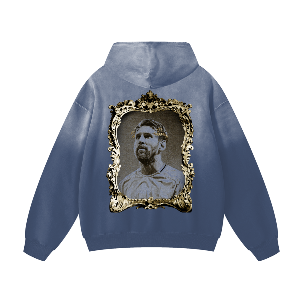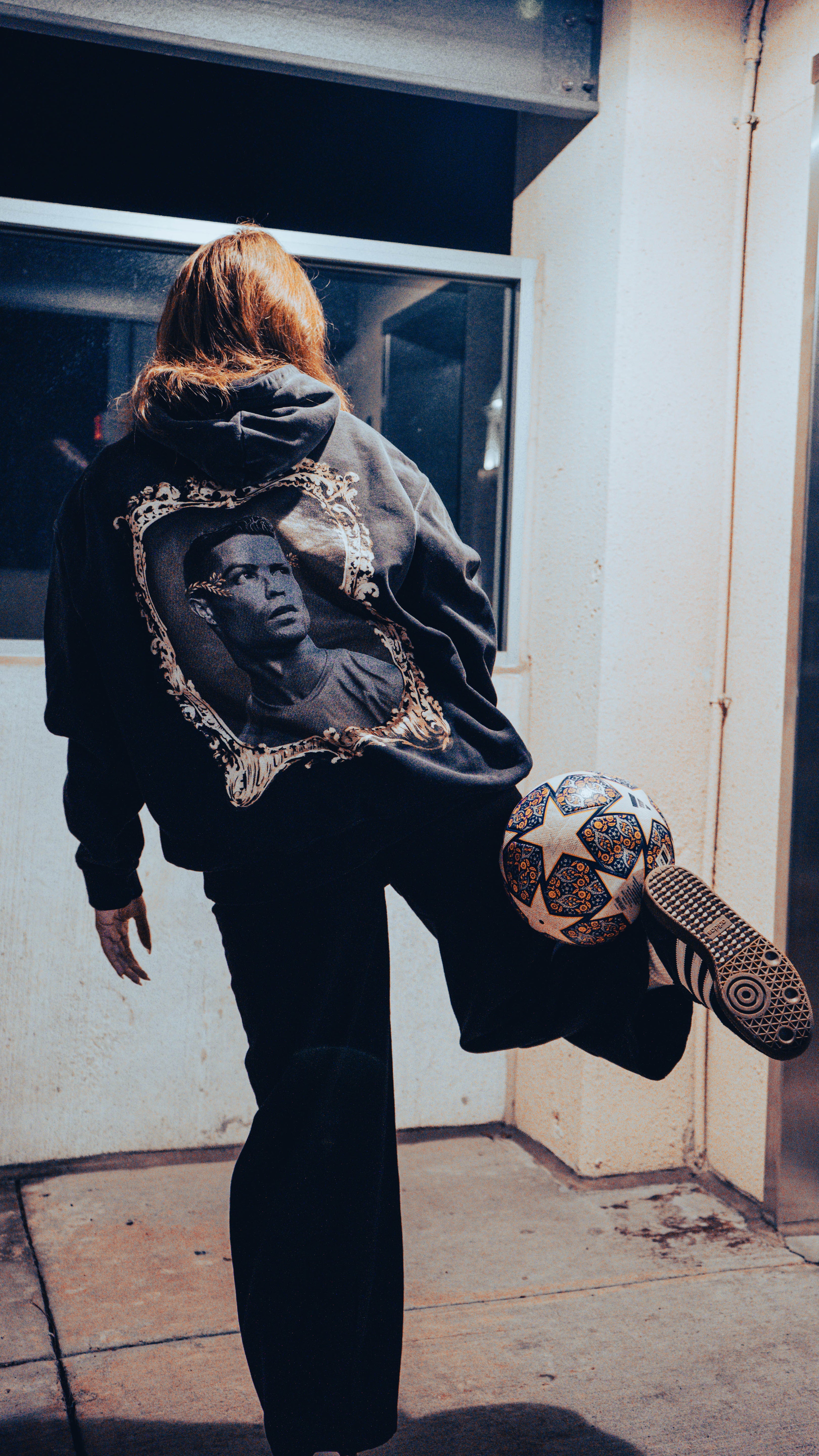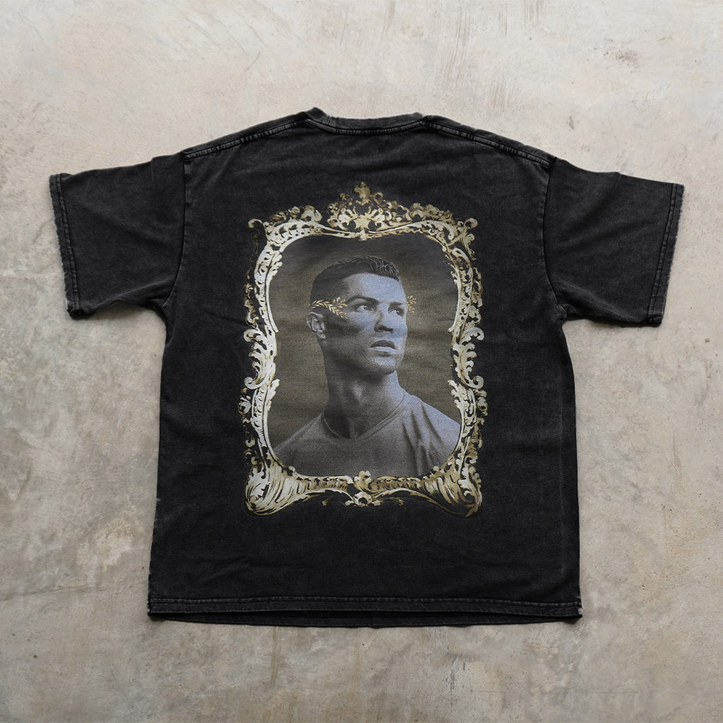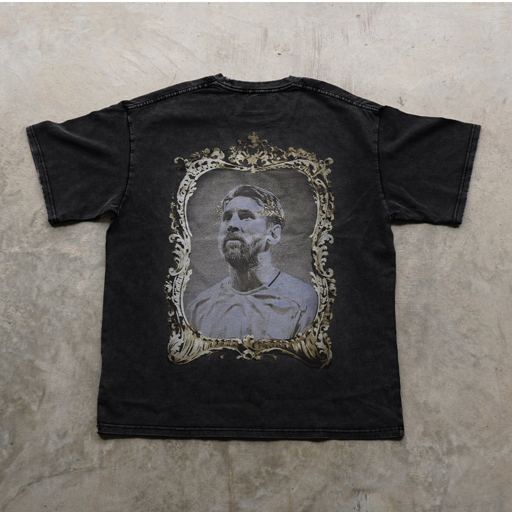The Young King celebrates the new generation of icons. Featuring a bold portrait-style graphic crowned in legacy, this piece fuses football royalty with streetwear energy.
