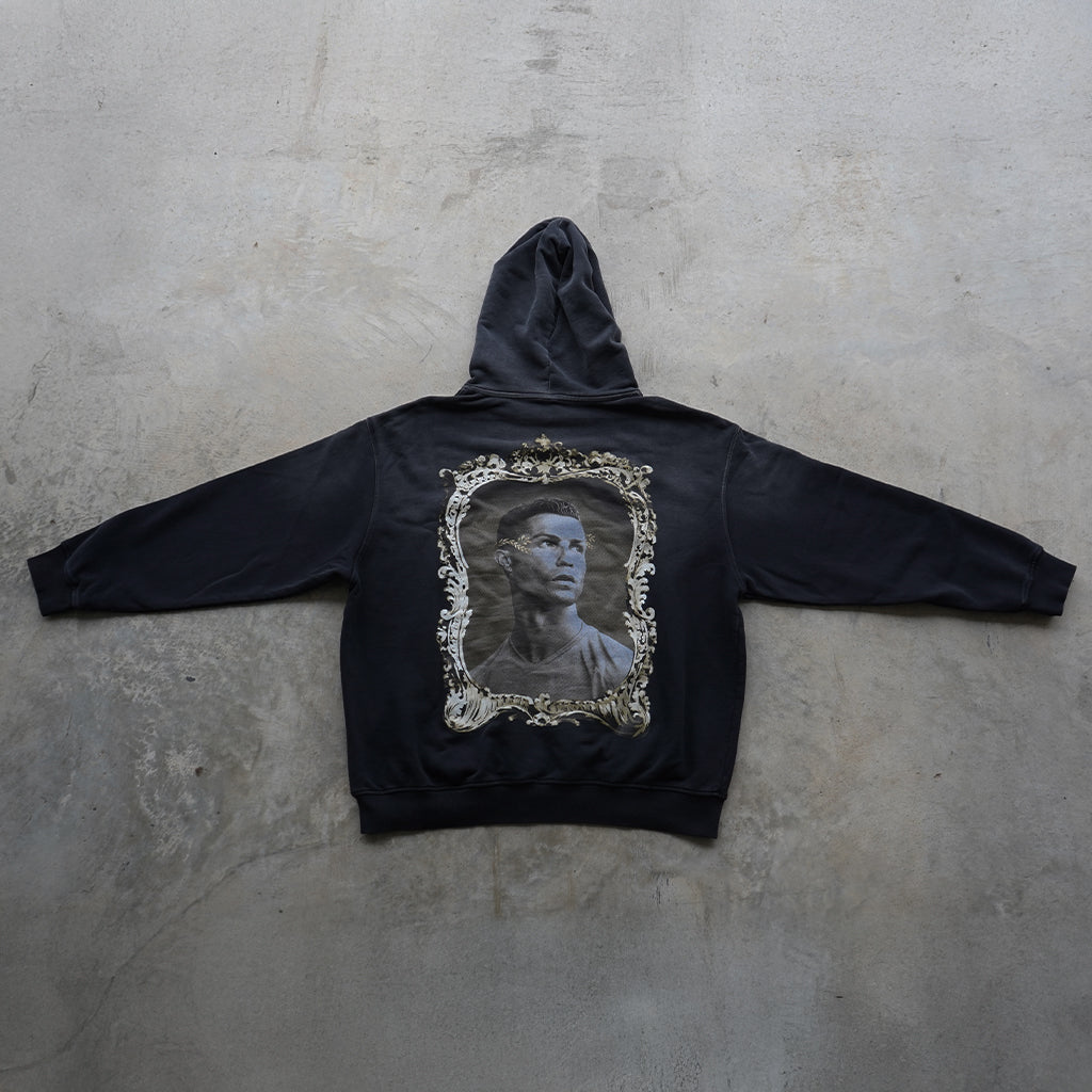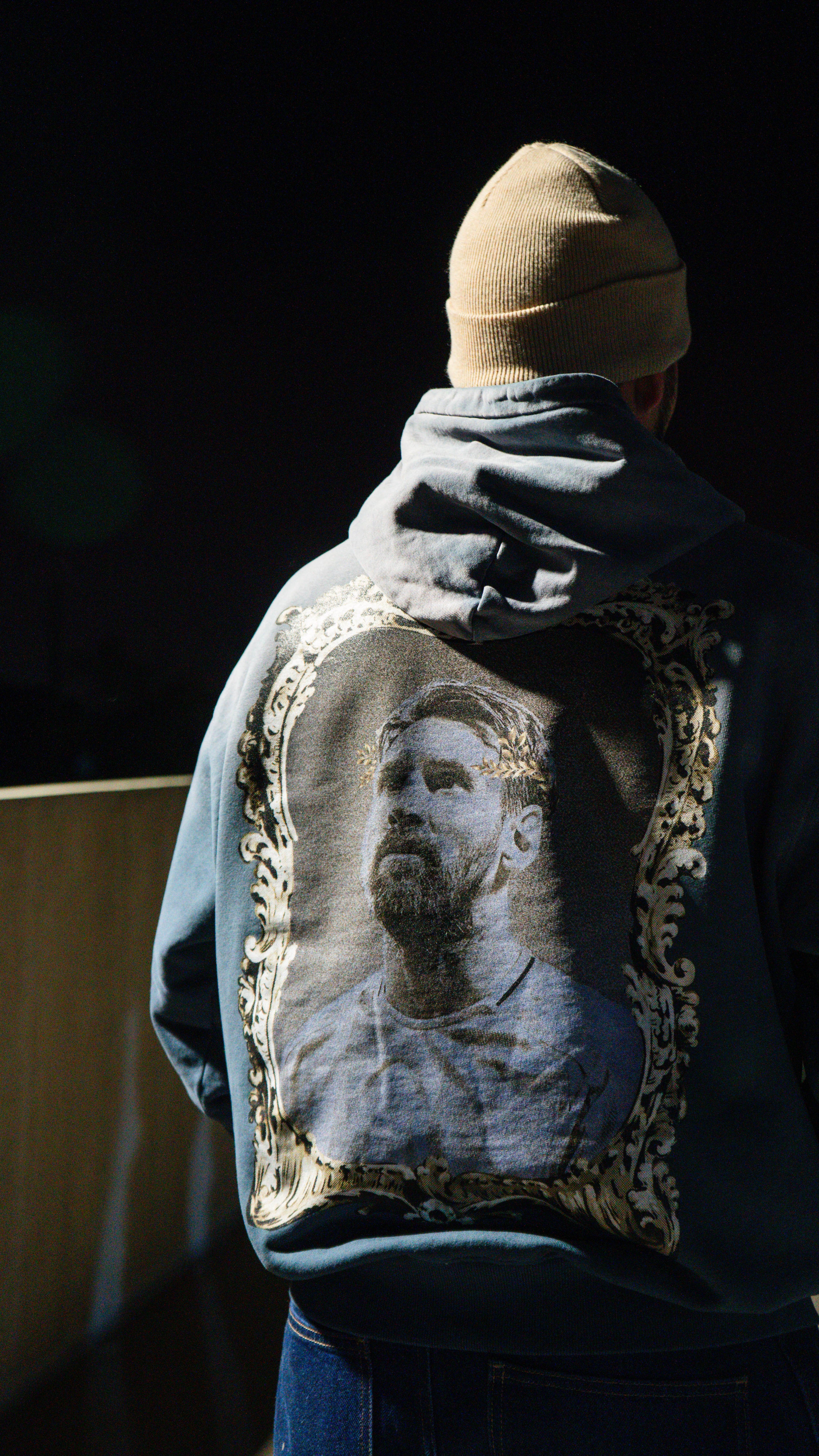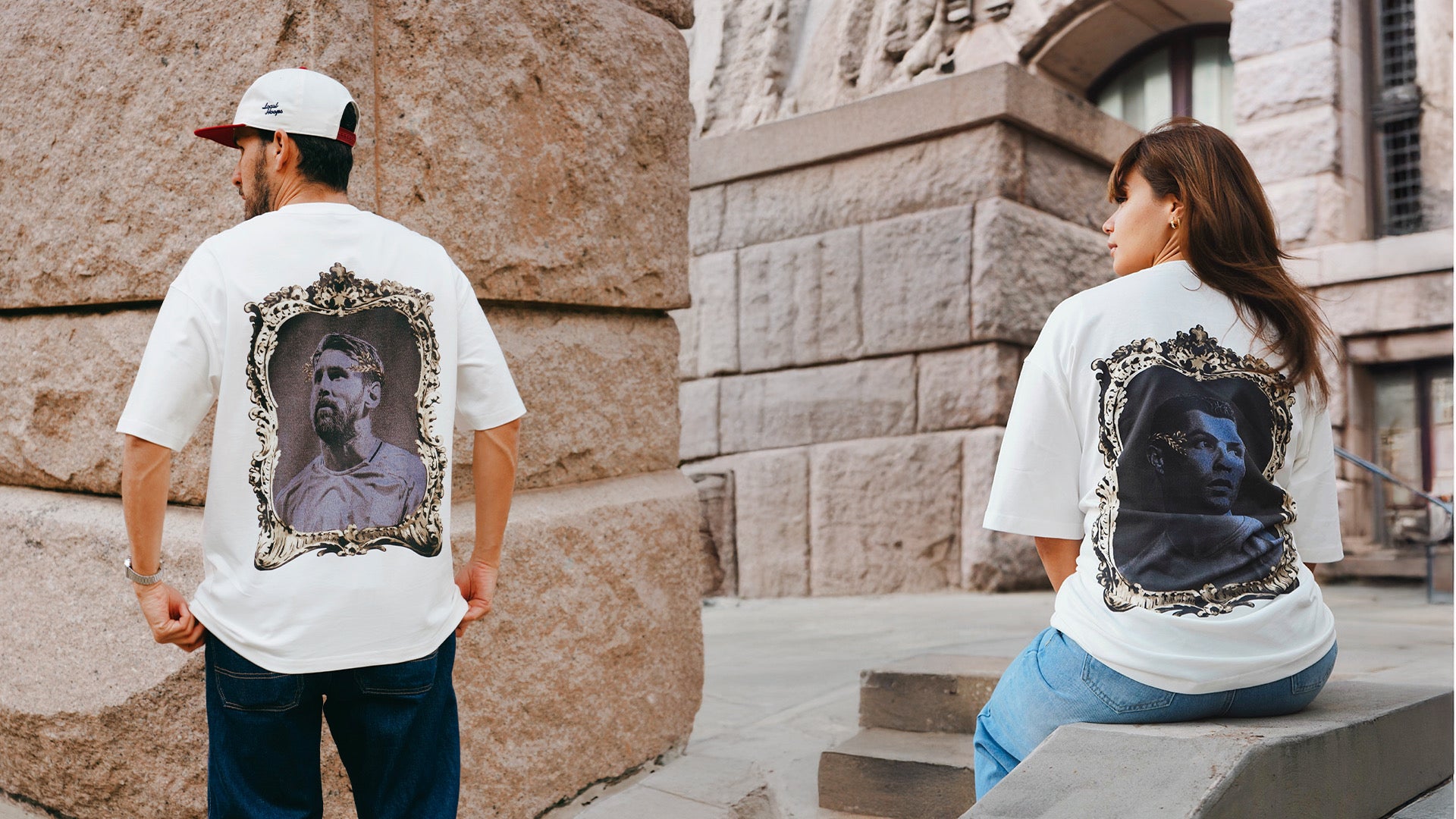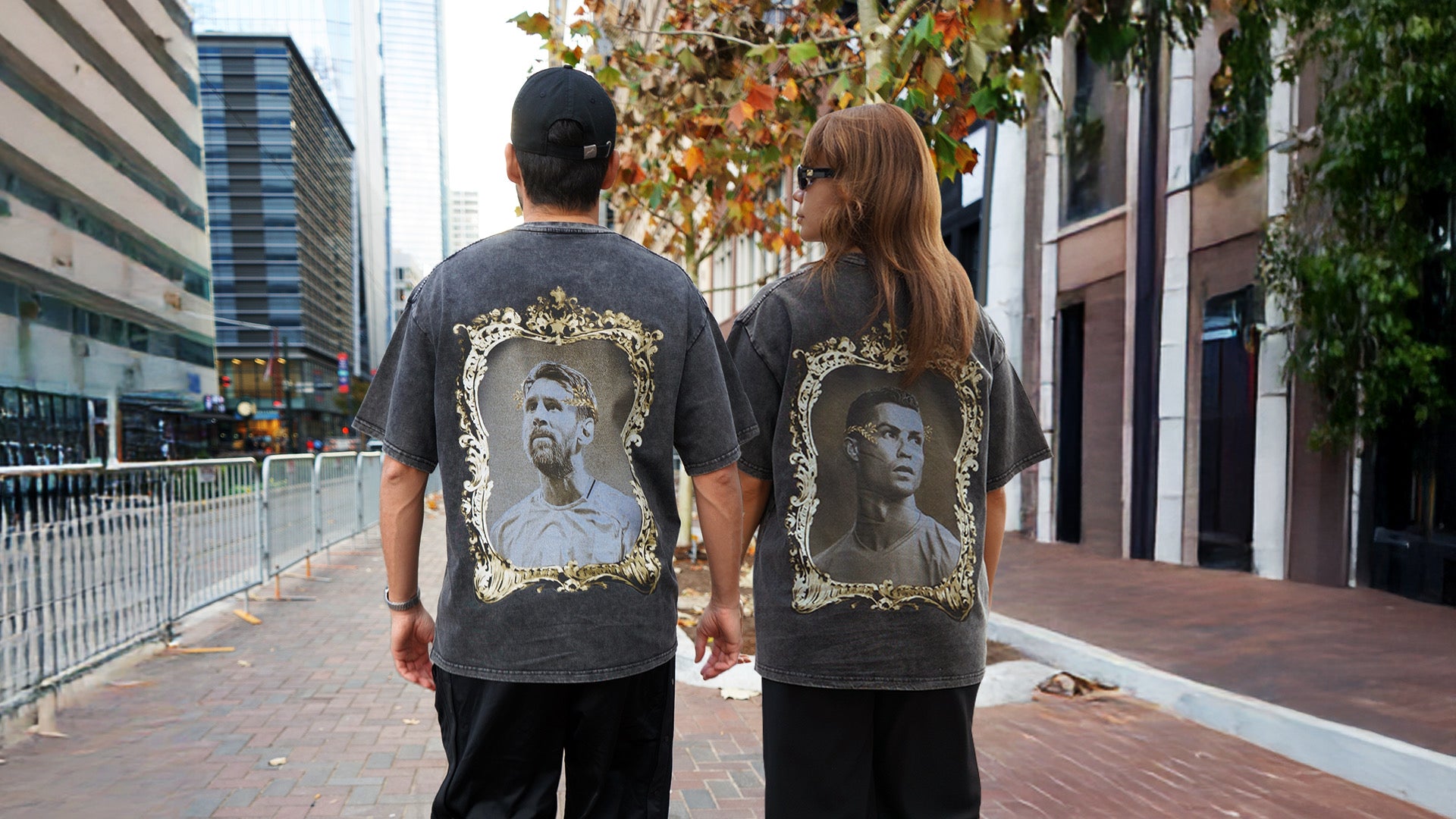 The Young King celebrates the new generation of icons. Featuring a bold portrait-style graphic crowned in legacy, this piece fuses football royalty with streetwear energy.